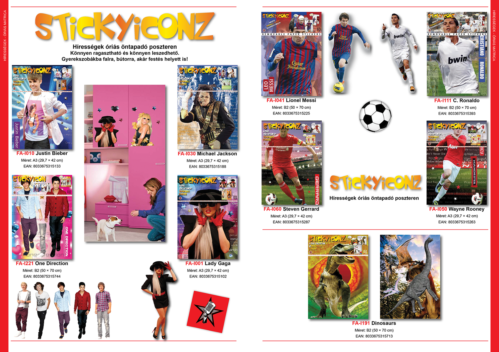 Hírességek óriás öntapadó poszteren. Könnyen ragasztható és könnyen leszedhető. Gyerekszobákba falra, bútorra, akár festés helyett is!