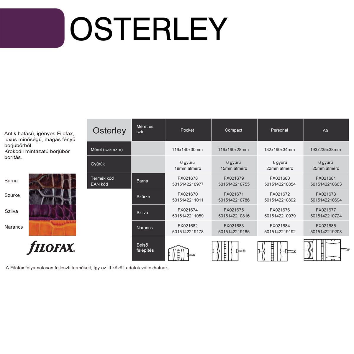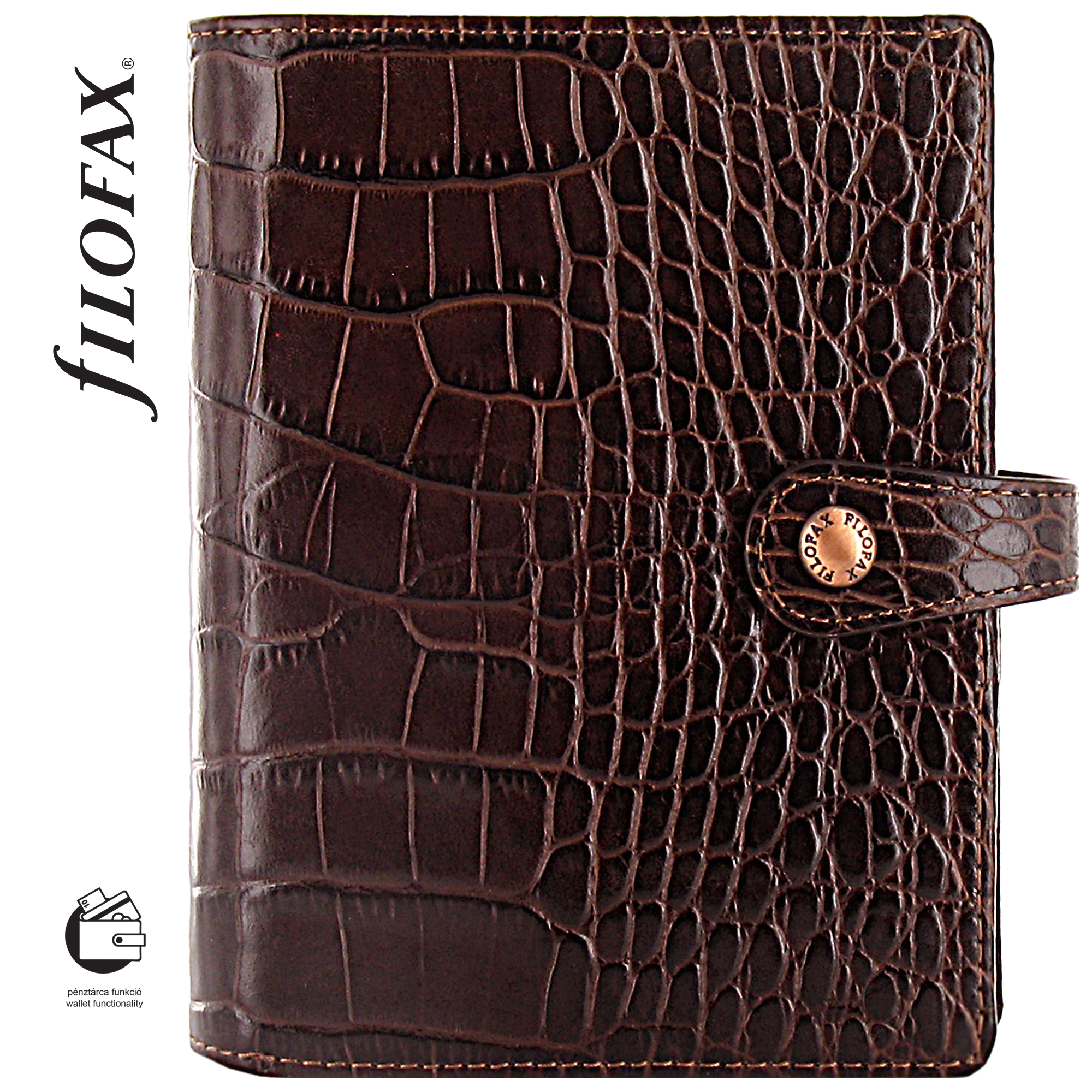 Tűnjön ki a tömegből az Osterley Filofax gyűrűs kalendáriummal! Luxus minőségű, krokodilbőr-mintázatú olasz borjúbőr borító, kézi kidolgozású, két-tónusú felülettel. Speciális kialakítású belső, mely mind üzleti, mind szabadidős célokra kiváló. A Pocket méret pénztárca funkcióval rendelkezik.