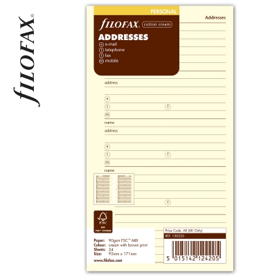 Filofax Kontakt lista (Név / Cím / Telefon / Email / Fax / Mobil) Personal Krém