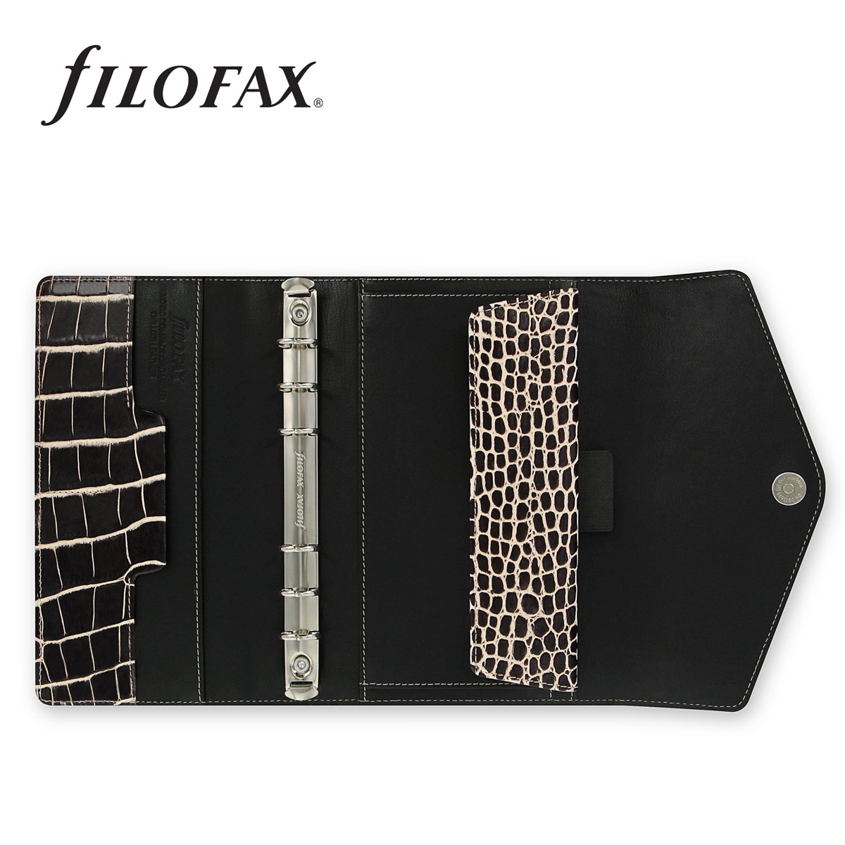 A régi idők stílusa által inspirált és krokodil mintás deluxe kézi kialakítású bőr borítóval érkezik a Filofax Exotic organiser. A klasszikus pénztárcák mintájára tervezett Compact organiser belső zsebekkel, tolltartóval felszerelve kapható.