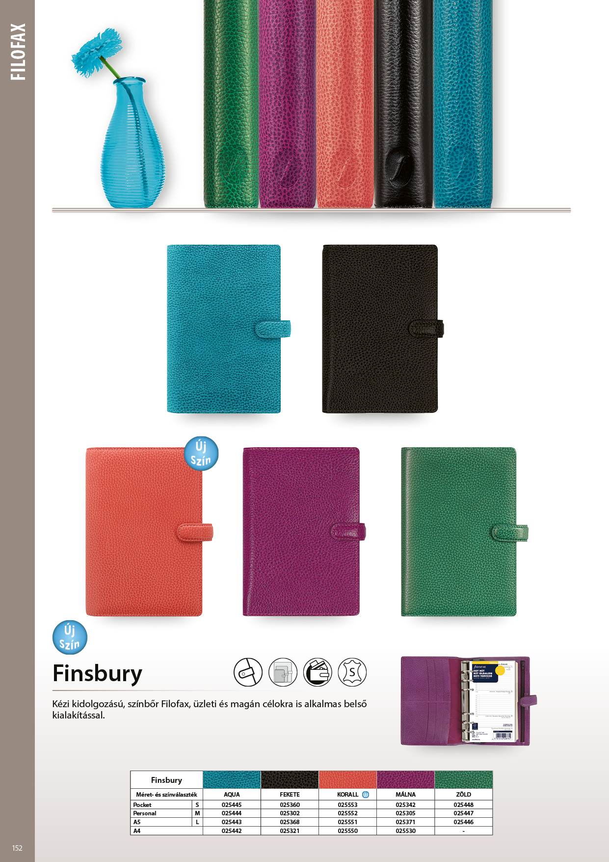 Tündököljön a divatszínek széles skálájában! A Finsbury Filofaxok között az élénk, divatos árnyalatokat kedvelők csakúgy megtalálhatják kedvencüket, mint a visszafogottabb darabokat keresők. A Finsbury Filofax diszkréten strukturált bőr borítóval és praktikus belső kialakítással készült. Ideális választás üzleti vagy szabadidős tervezéséhez.