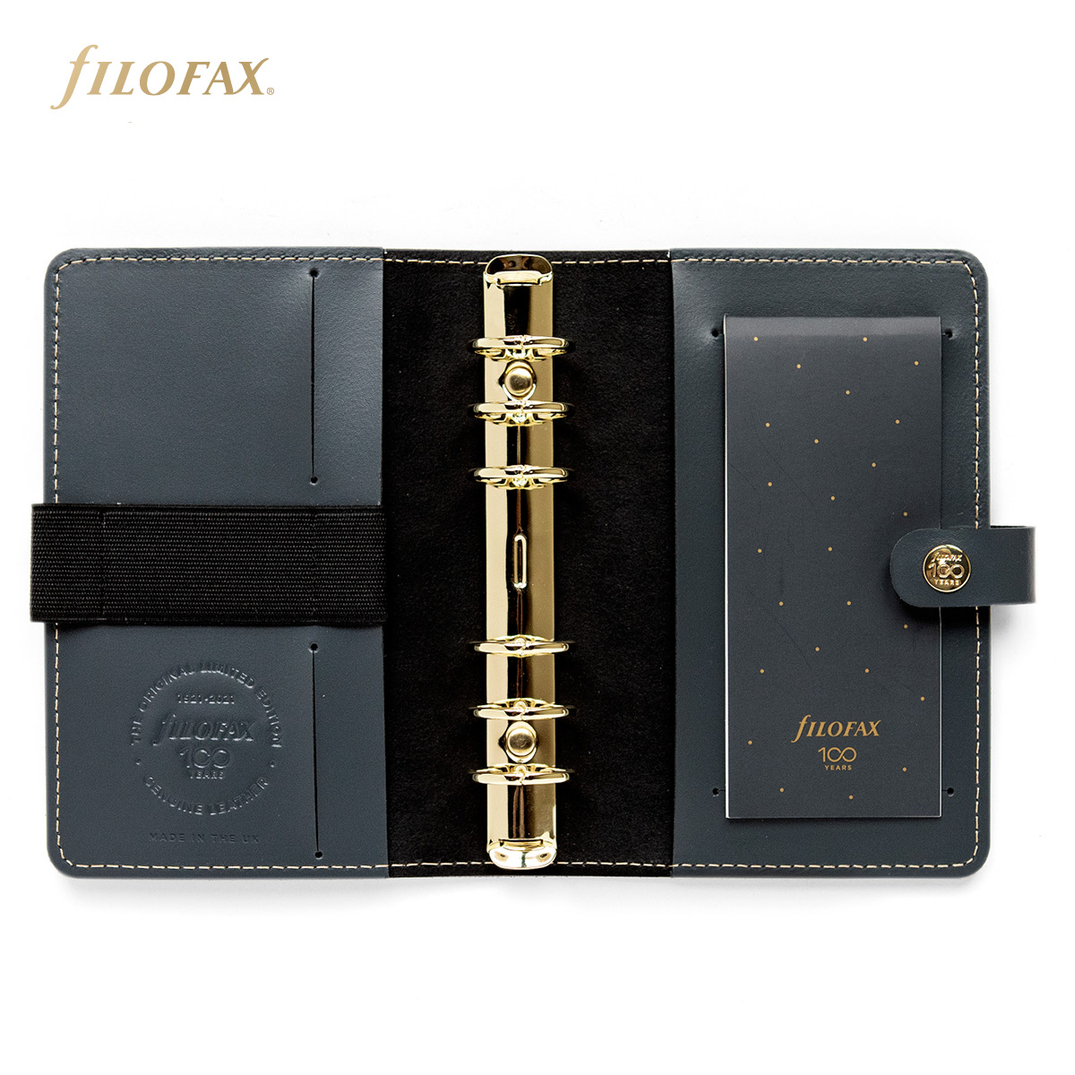Limitált kiadás! Az első Filofax 1921-ben, pontosan 100 éves készült. A Centenárium kollekció a 100 év töretlen sikert ünneplő, limitált kiadású termékeket tartalmaz: gyűrűs kalendáriumokat arany színű - a standard változatnál nagyobb átmérőjű - gyűrűs szerkezettel, arany varrással és patenttel. A Centenárium kollekcióban, a gyűrűs kalendáriumhoz illő tollakat és szervező címkéket is talál.