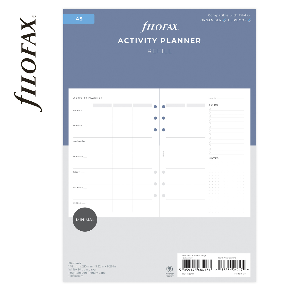 Filofax Lifestyle tervező Tevékenység A5 Minimal fehér