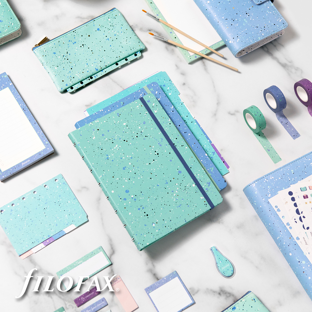 Az Expressions kollekció az apró festékpöttyeivel a kreativitást ünnepli. Kicsit kesze-kusza, kicsit szertelen, de nagyon vidám és gyönyörű a pasztell kék és menta árnyalatokban. Fedezze fel az egész kollekciót, mely számos egyéb kiegészítőt is tartalmaz ezekben a színekben.