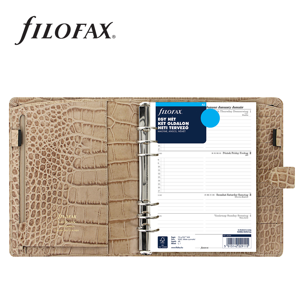 Luxus minőségű olasz borjú színbőrből készült Filofax, minden igényt kielégítő belső kialakítással és dokumentum tároló zsebbel.
