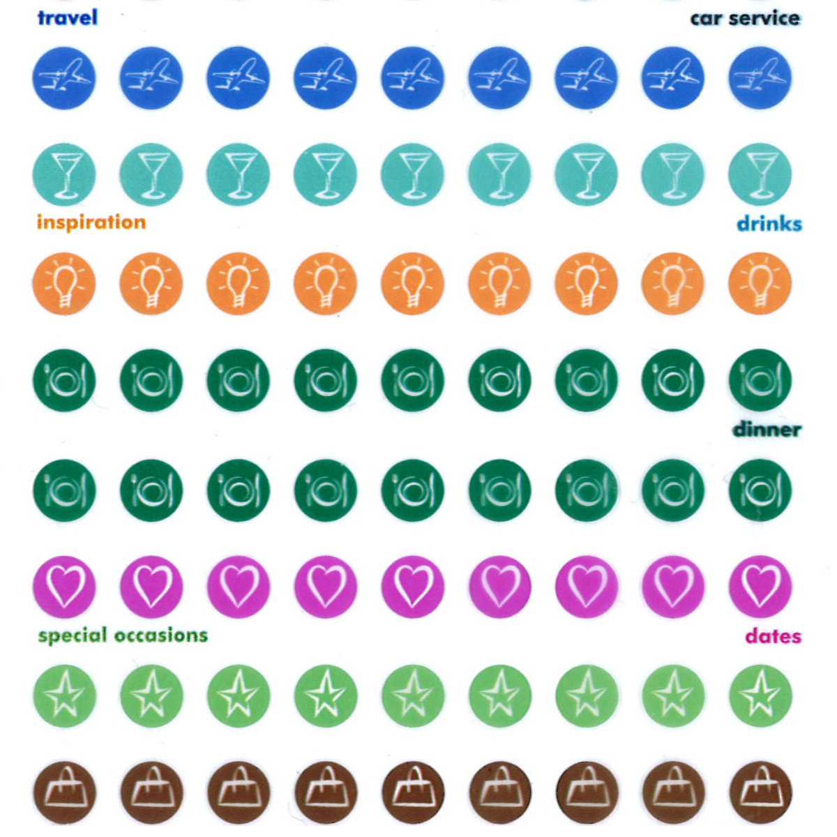 Akár íróeszköz nélkül is tehet bejegyzéseket a Filofaxba, vagy a bejegyzéseket kiemelheti, feltűnőbbé teheti a színes szervező címkék segítségével. A színes címkék segítséget nyújtanak Önnek, hogy soha ne felejtse el a fontos időpontokat, évfordulókat, születésnapokat. Témák szerinti csoportosításban, 264 címke áll a rendelkezésére.
