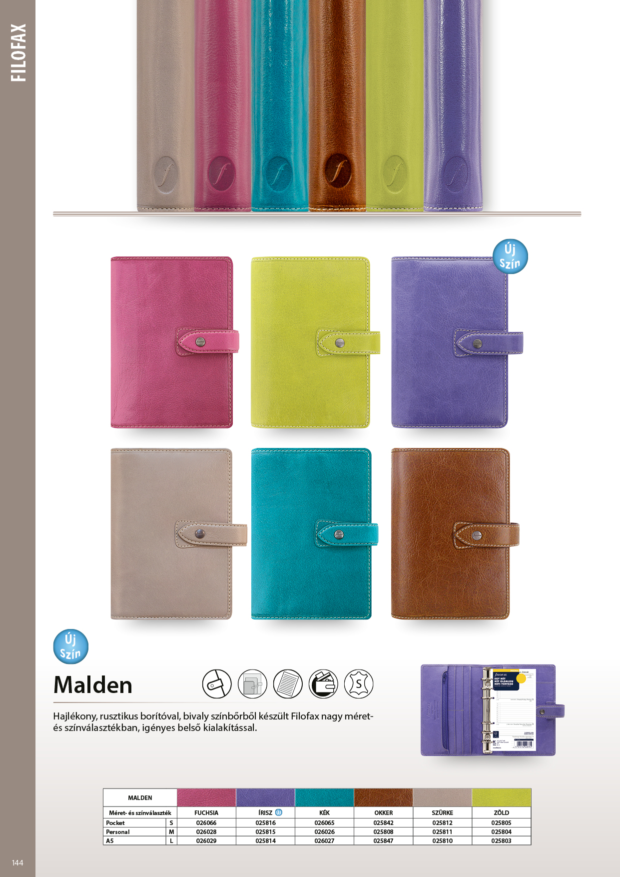 A Malden Filofaxok luxus minőségű bölény színbőrből készülnek. A kontrasztos varrás, az egyedi formájú záró pánt és a hajlékony borító, a sokoldalú belsővel kiegészülve teszi páratlan élménnyé a Malden Filofaxok használatát.