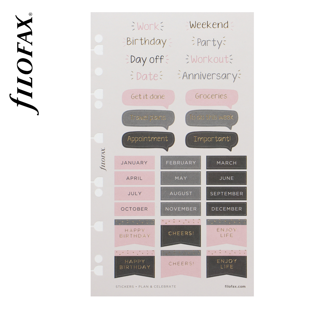 Akár íróeszköz nélkül is tehet bejegyzéseket a Filofaxba, vagy a bejegyzéseket kiemelheti, feltűnőbbé teheti a színes szervező címkék segítségével. A Confetti kollekció ihlette címkék segítséget nyújtanak Önnek, hogy soha ne felejtse el a fontos időpontokat, évfordulókat, születésnapokat. Témák szerinti csoportosításban, 284 címke áll a rendelkezésére.