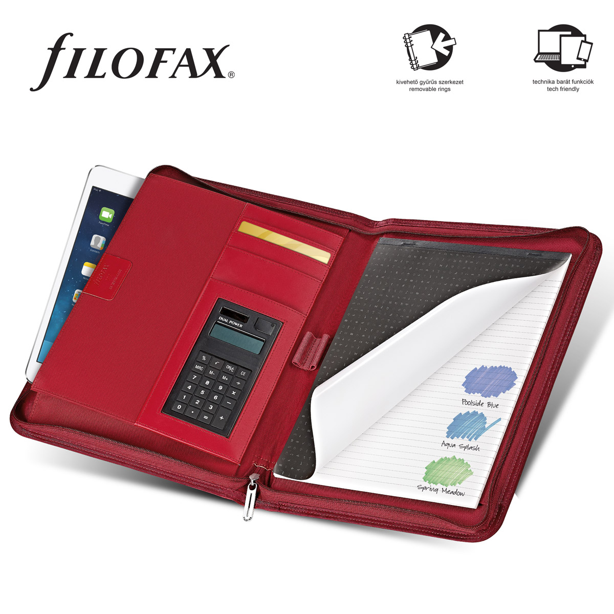 Filofax Microfiber Mappa A4 Zip Számológéppel Piros