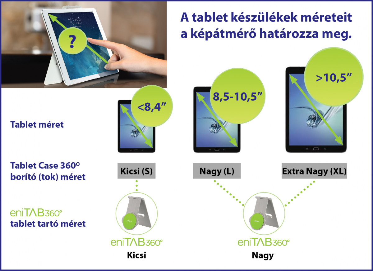 A Filofax eniTAB360 univerzális tablet tok + tartó bármely tablet készülékhez használható. Önnek csak a tablet készülék méretét kell ismernie.